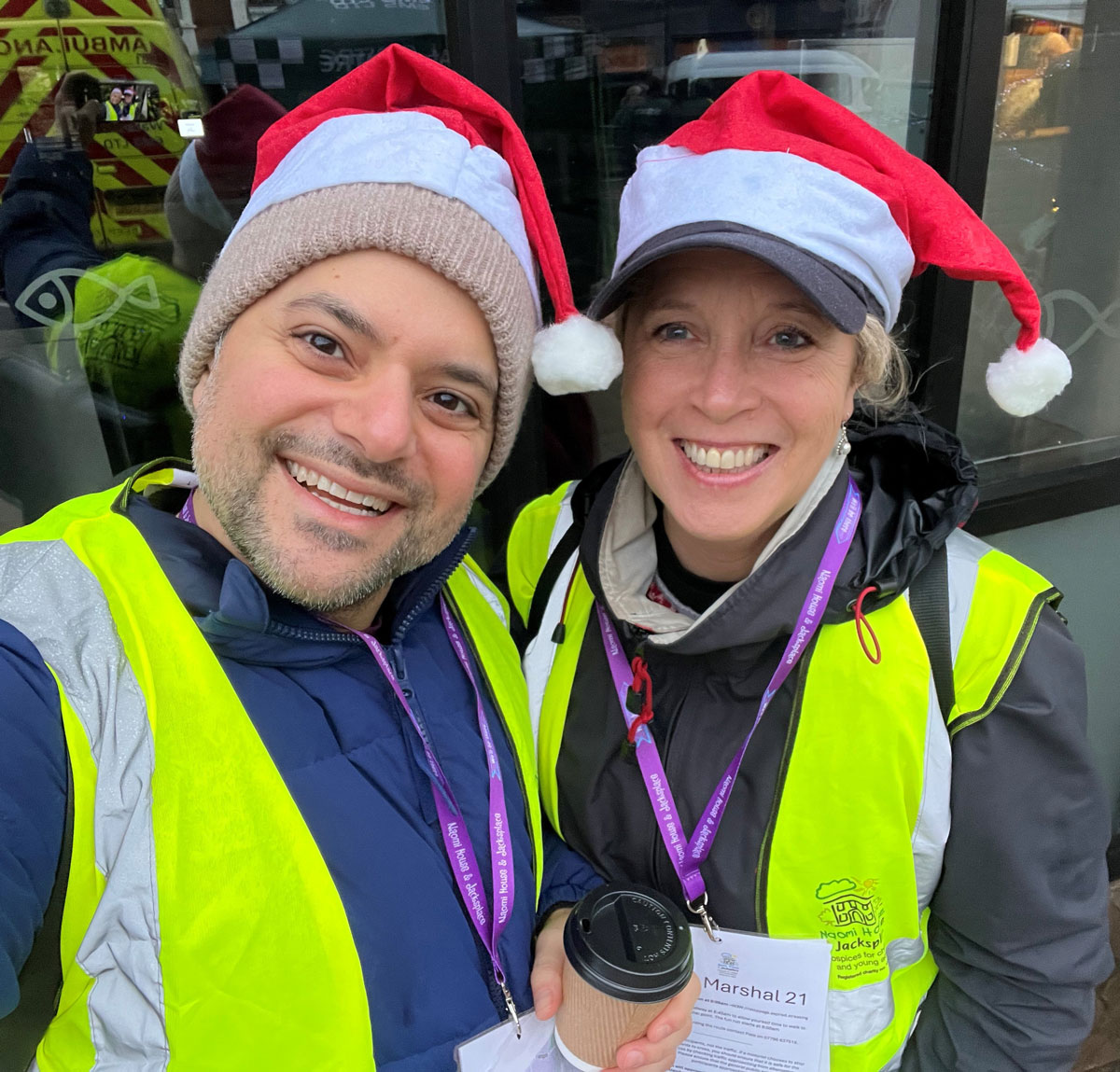 “It was wonderful to be a part of this year’s Santa Fun Run. We spent the morning directing and cheering on over 1000 Santas in our role as event marshals. Some Santas were far speedier than others but whatever their pace, every participant seemed to be full of festive cheer! Despite the wet weather, the turnout and atmosphere were amazing.”